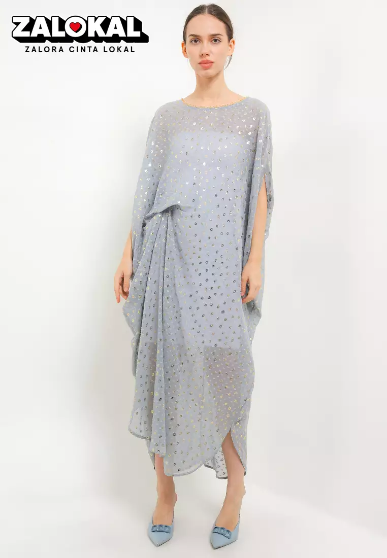 Chic SimpleBeaded Neckline Gold Print Swissdot Chiffon Ruched Kaftan1198000.00599000.00