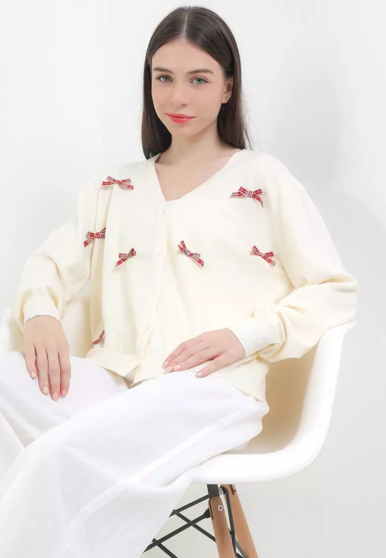 Chic SimpleL/S Knit Jacket W/ Check Print Bow Patches375000.00300000.00