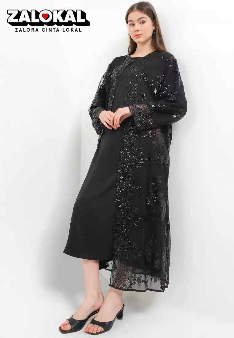 L/S Sequined Emb Mesh Outer With Separate Inner Dress
