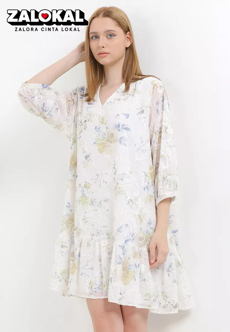 Chic SimpleL/S V-Neck Flo Print Parsley Emb Chiffon Ruffle Hem Dress545000.00436000.00