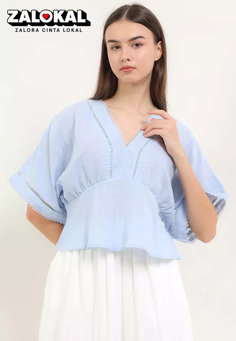 Chic SimpleLace Trimmed V Neck Dolman Sleeves Empire Blouse350000.00280000.00