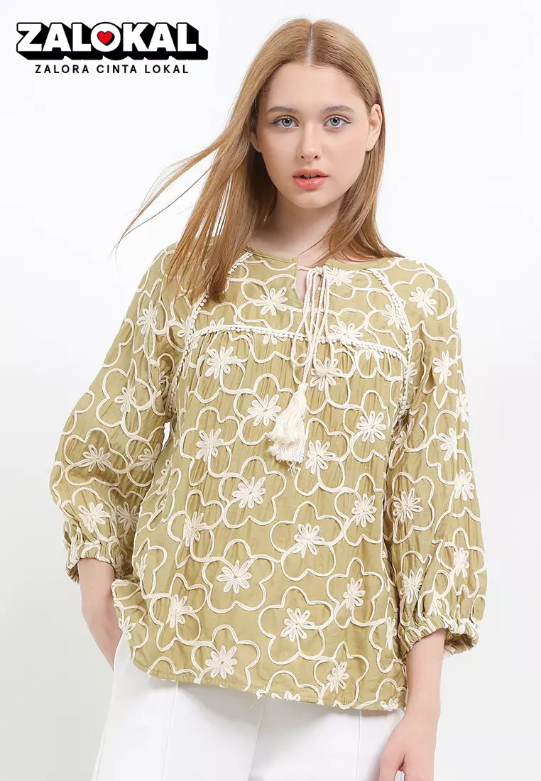 Long Raglan Sleeves 3D Flo Blouse W/ Tassels
