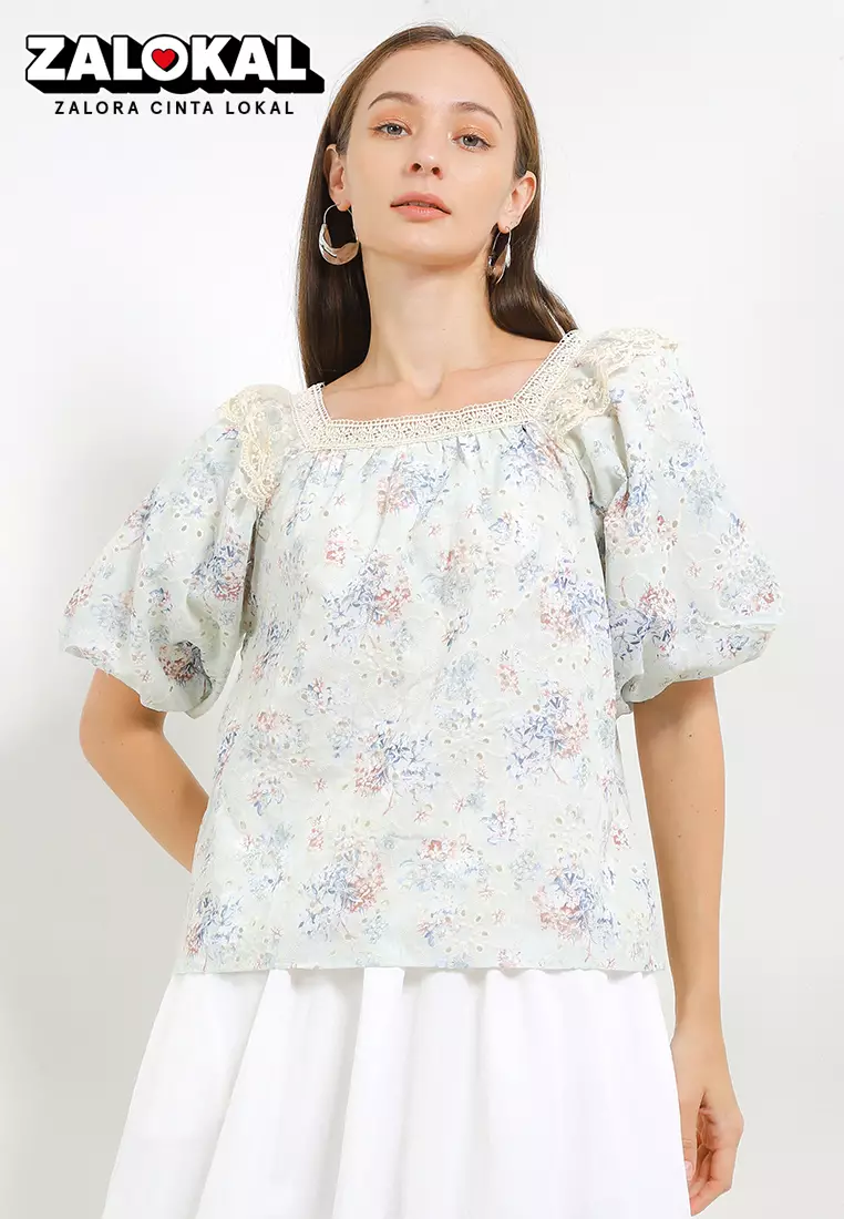 Chic SimplePuff S/S Square Neckline Eyelet Flo Print Blouse395000.00316000.00