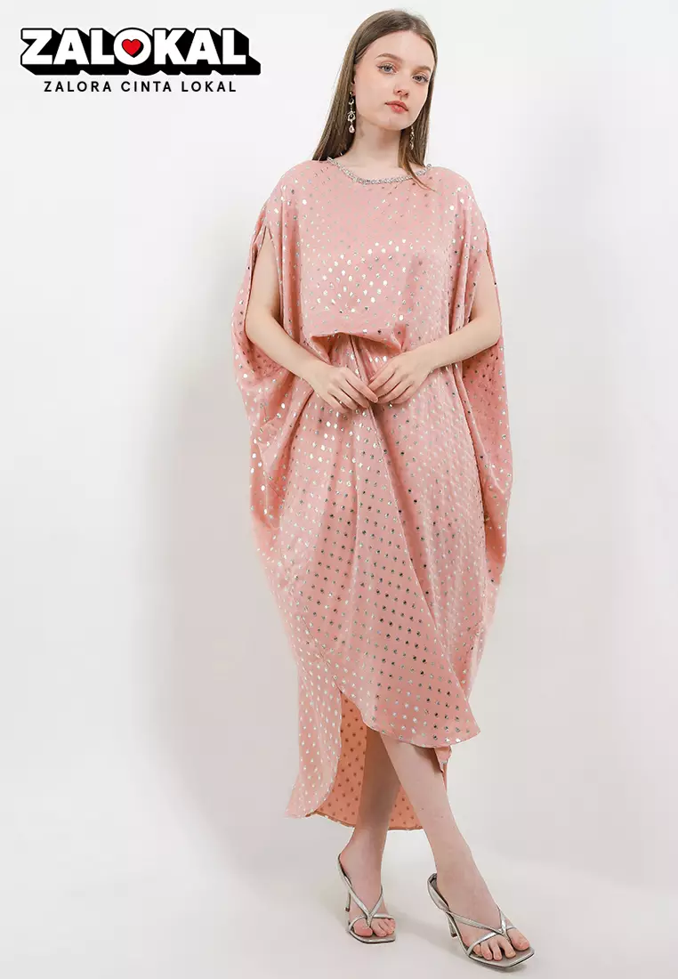 Chic SimpleSilver Print Ruched Kaftan W/ Plastic Diamond Around Neckline1198000.00479200.00