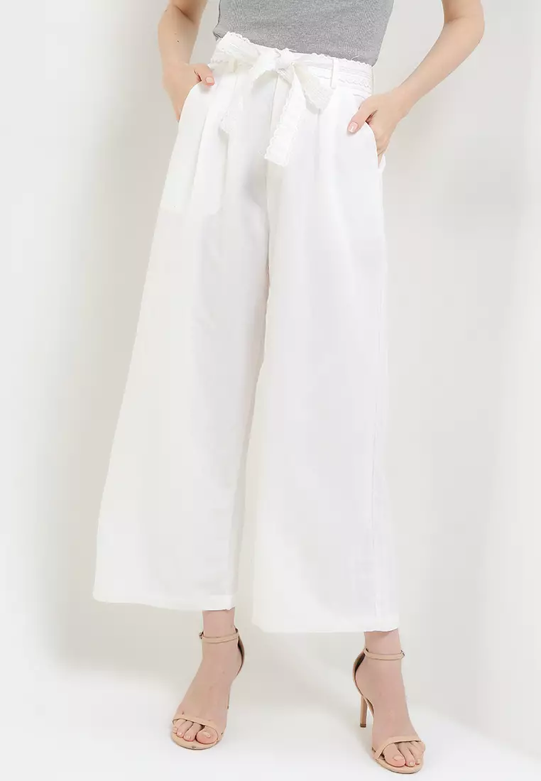 Wideleg Pants W/ Laced Belt And Side Pockets