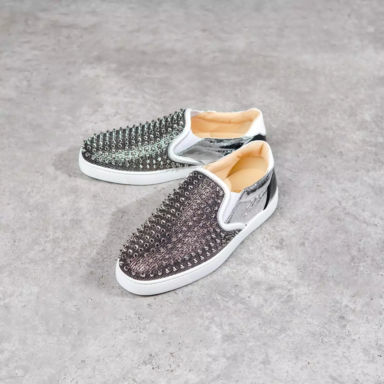 Sepatu CHRISTIAN LOUBOUTIN SAILOR BOAT SPIKE SILVER WHITE SLIP ON 100% ORIGINAL