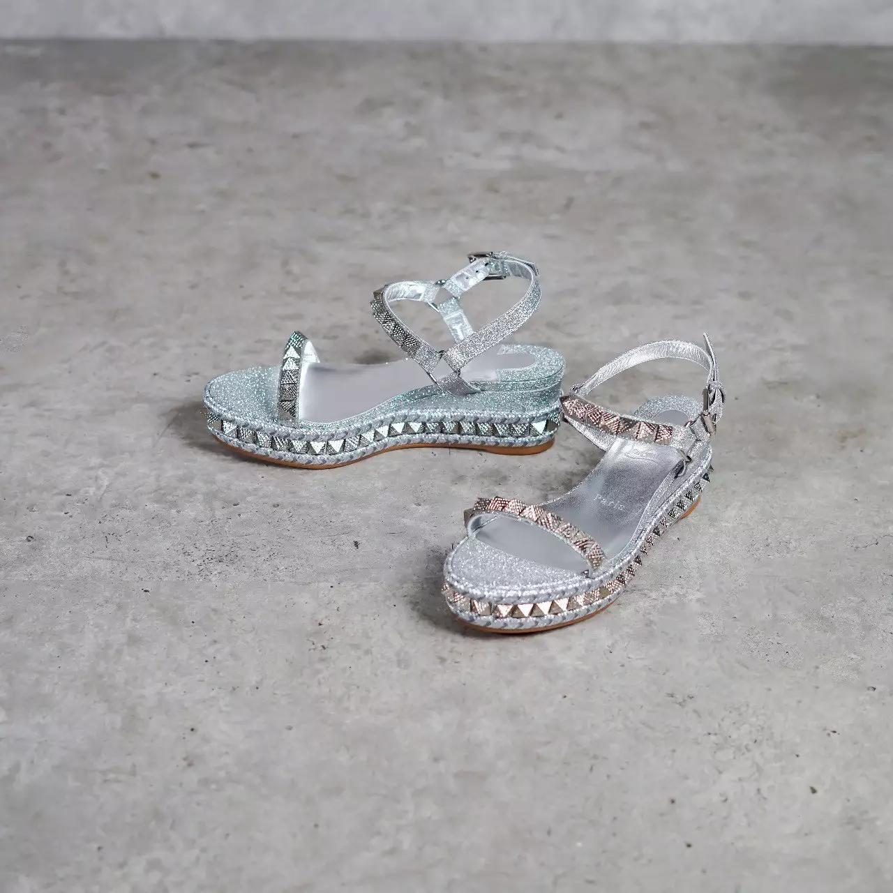 CHRISTIAN LOUBOUTINSepatu CL CHRISTIAN LOUBOUTIN PYRACLOU 6CM SILVER SPIKE WEDGES 100% ORIGINAL20813000.0014000000.00