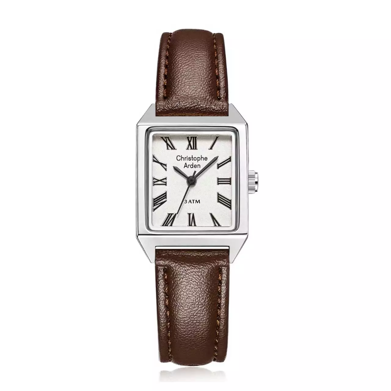 Christophe Arden Jam Tangan Wanita - Brown Silver - Leather - 1004 LHLSSSLBO2