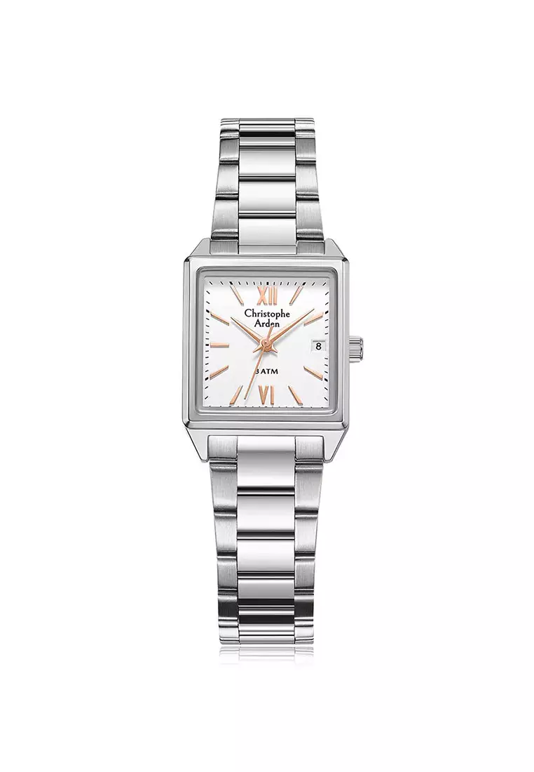 Christophe Arden Jam Tangan Wanita - Silver White Rosegold - Stainless Steel - 2003 LDBSSSLRG
