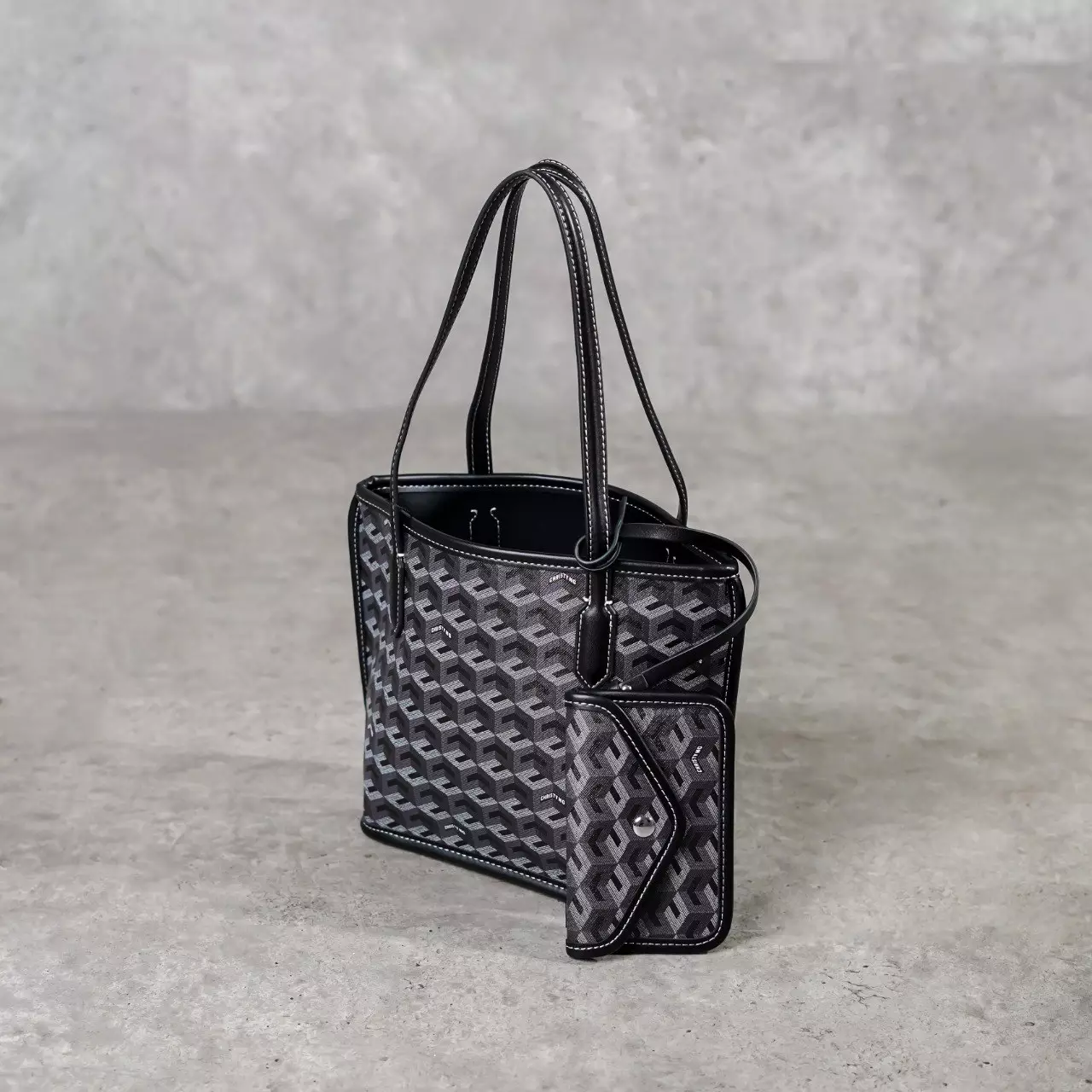 Tas CHRISTY NG RUSSO MONOGRAM PATTERN BLACK TOTE BAG MINI 100% ORIGINAL
