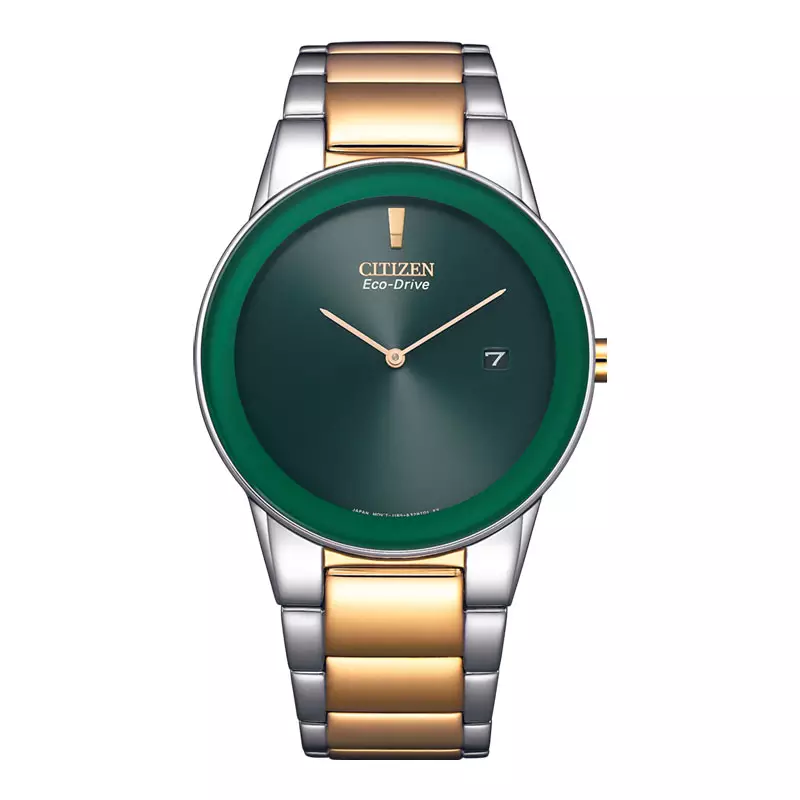 Jam Tangan Pria Citizen Eco Drive AU1064-85X Men Green Dial Dual Tone Stainless Steel Strap