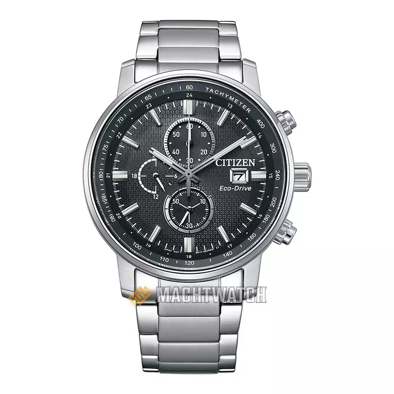 Jam Tangan Pria Citizen Eco Drive CA0840-87E Men Chronograph Black Dial Stainless Steel Strap