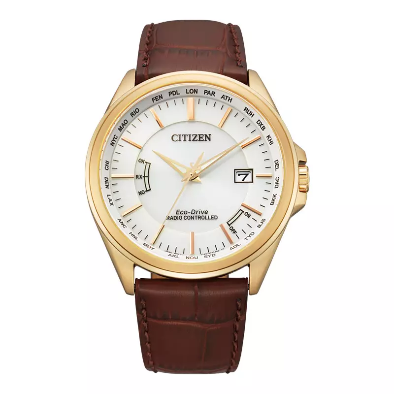 Jam Tangan Wanita Citizen Eco-Drive CB0253-19A White Dial Brown Leather Strap