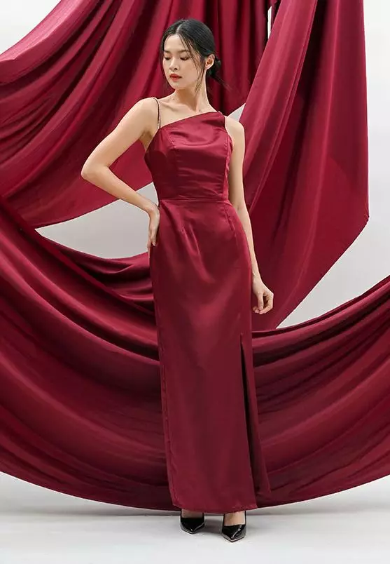 Cloth IncRhinestone Asymmetric Satin Maxi Dress in Maroon599000.00509150.00