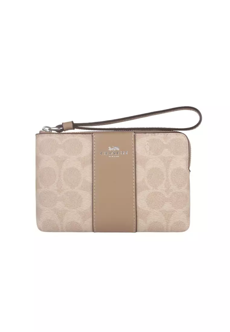 CoachCorner Zip Wristlet In Signature Canvas With Stripe In Sand Taupe CW854SVPWH2323741.00
