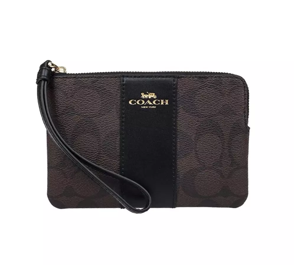 F58035 Corner Wristlet Zip Sig Brown Black