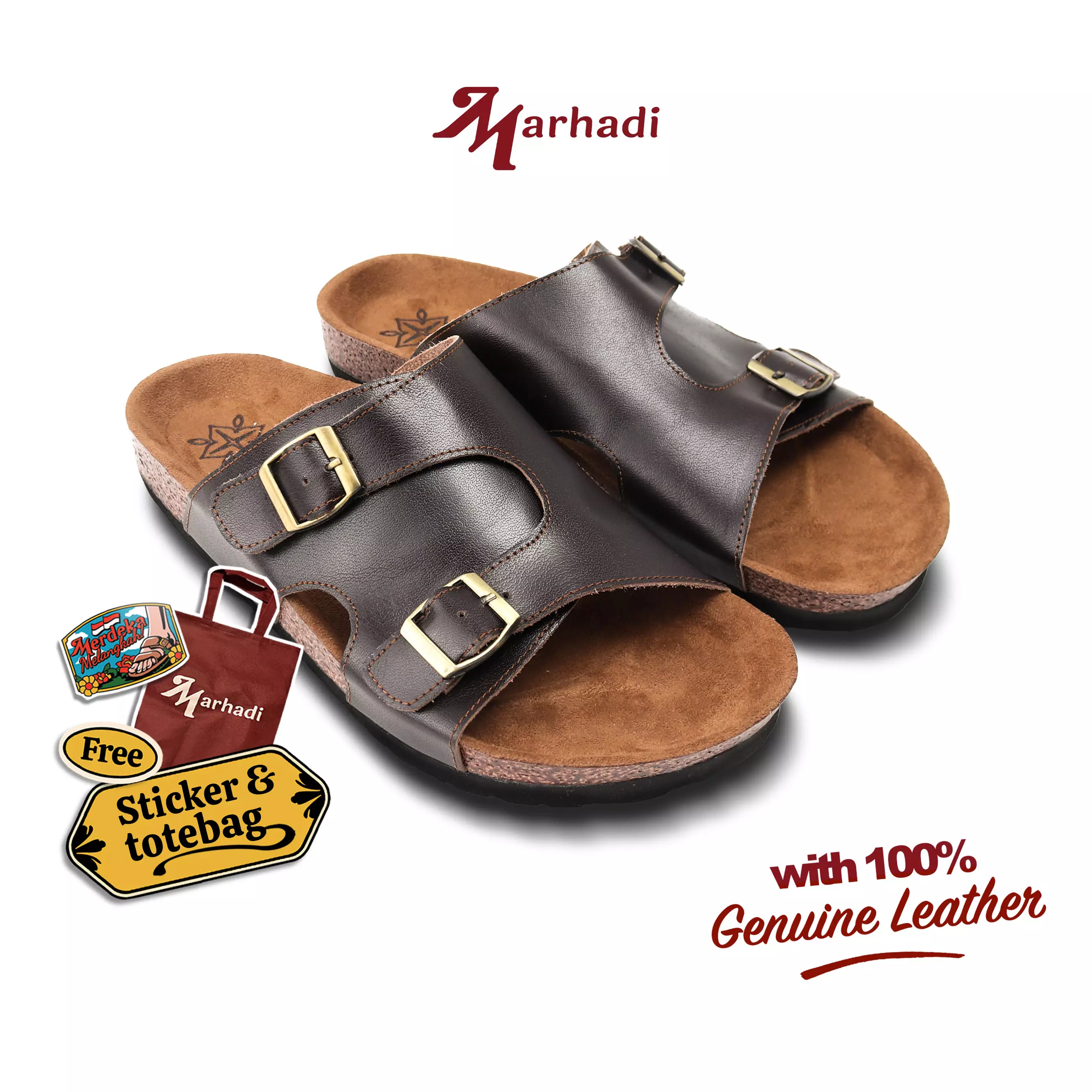 Sandal Slide Marhadi Sendal Pria Kulit Genuine Leather - Karten Brown
