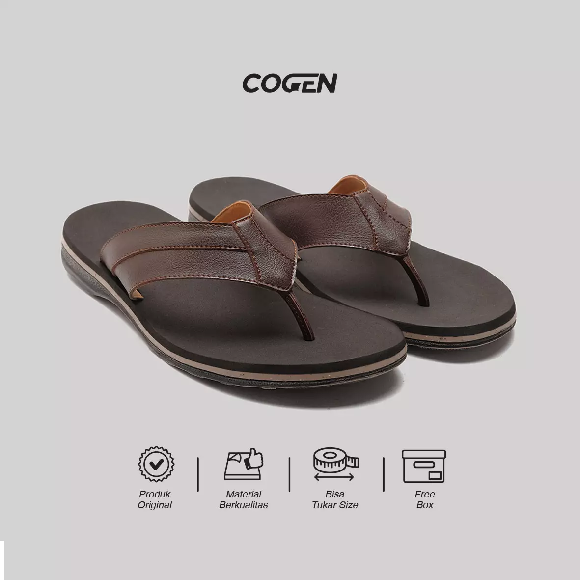 CogenSendal Jepit Kulit Pria Cogen Sandal Cowok Flip Flop Marino Leather - Brown339800.00139900.00
