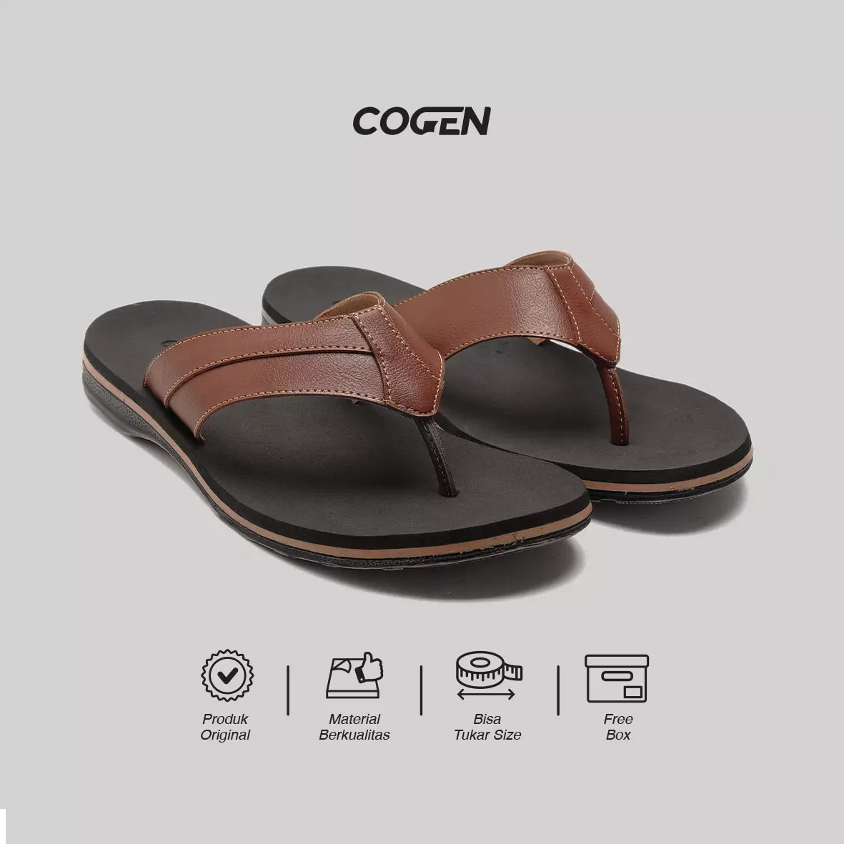 CogenSendal Jepit Kulit Pria Cogen Sandal Cowok Flip Flop Marino Leather - Tan339800.00139900.00