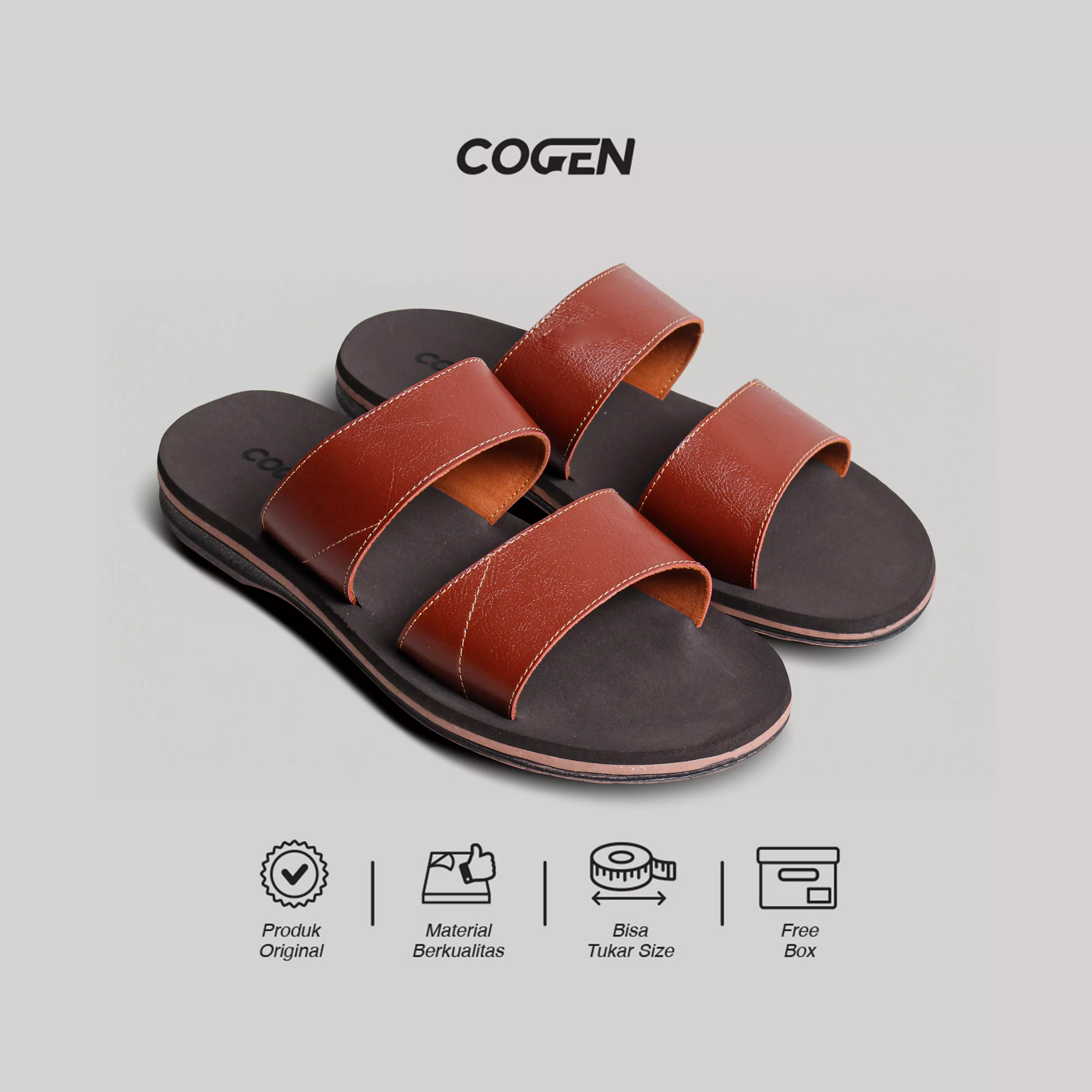Sendal Pria Kulit Cogen Dua Ban 2 Original Leather Sandal Kokop Marino - Tan