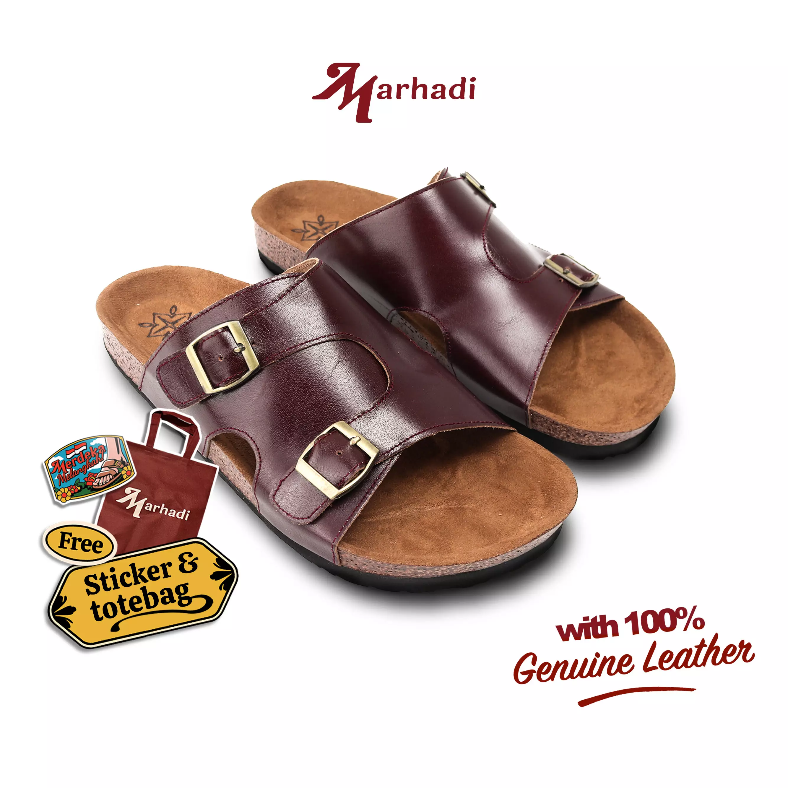 Sendal Pria Marhadi Sandal Slide Kulit Genuine Leather - Karten Maroon
