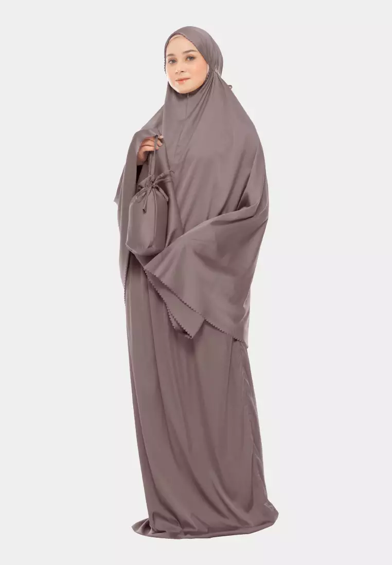 Ayesha Mukena 2in1 Prayer Set Polos Lasercuting Armani Silk Premium By Cotton Bee - Truffle Cocoa