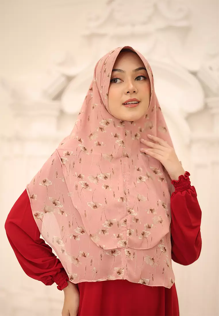 Cotton Bee - Hijab Instan Ceruty Motif 2 Layer | Kana Bergo - Blossom Pink
