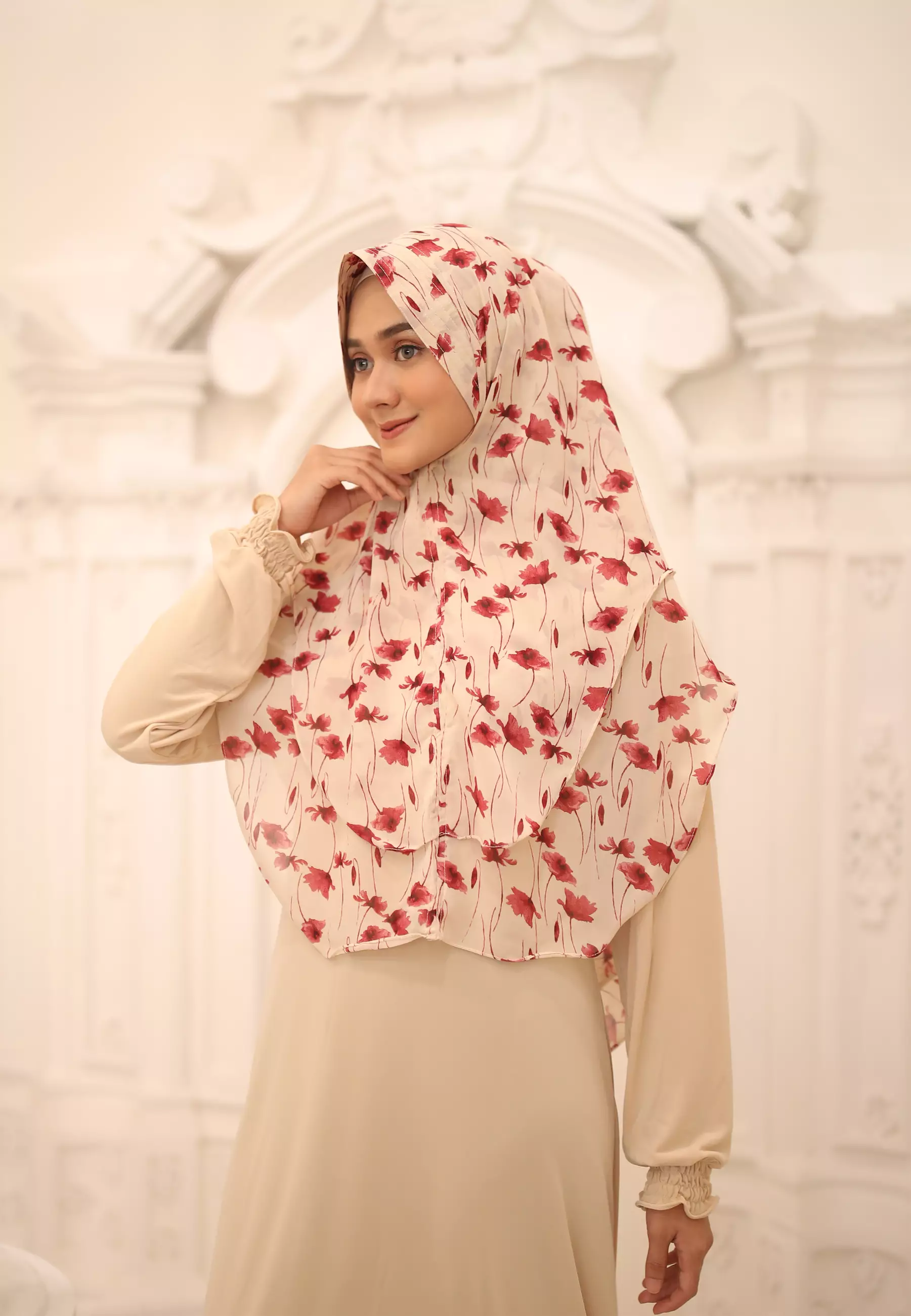 Cotton Bee - Hijab Instan Ceruty Motif 2 Layer | Kana Bergo - Whip Vanilla