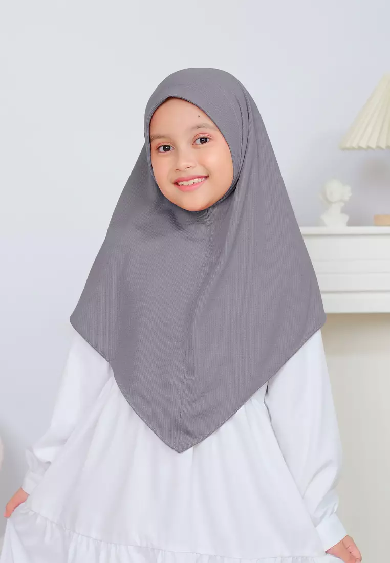 Cotton Bee - Miley Knit Bergo | Hijab Instan Anak - Dark Grey