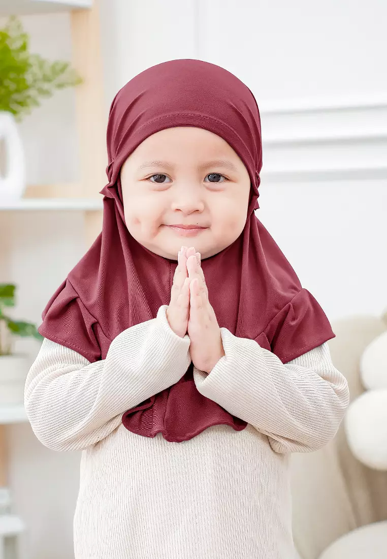 Cotton Bee - Ziva Ruffle Instan | Hijab Instan Anak | Kerudung Jilbab Bergo Tali Anak - Cherry Plum - S