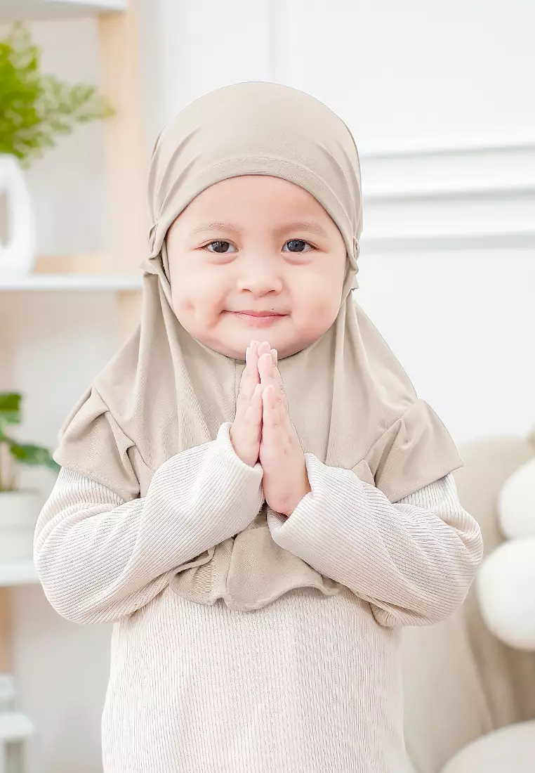 Cotton Bee - Ziva Ruffle Instan | Hijab Instan Anak | Kerudung Jilbab Bergo Tali Anak - Custard Vanilla - S