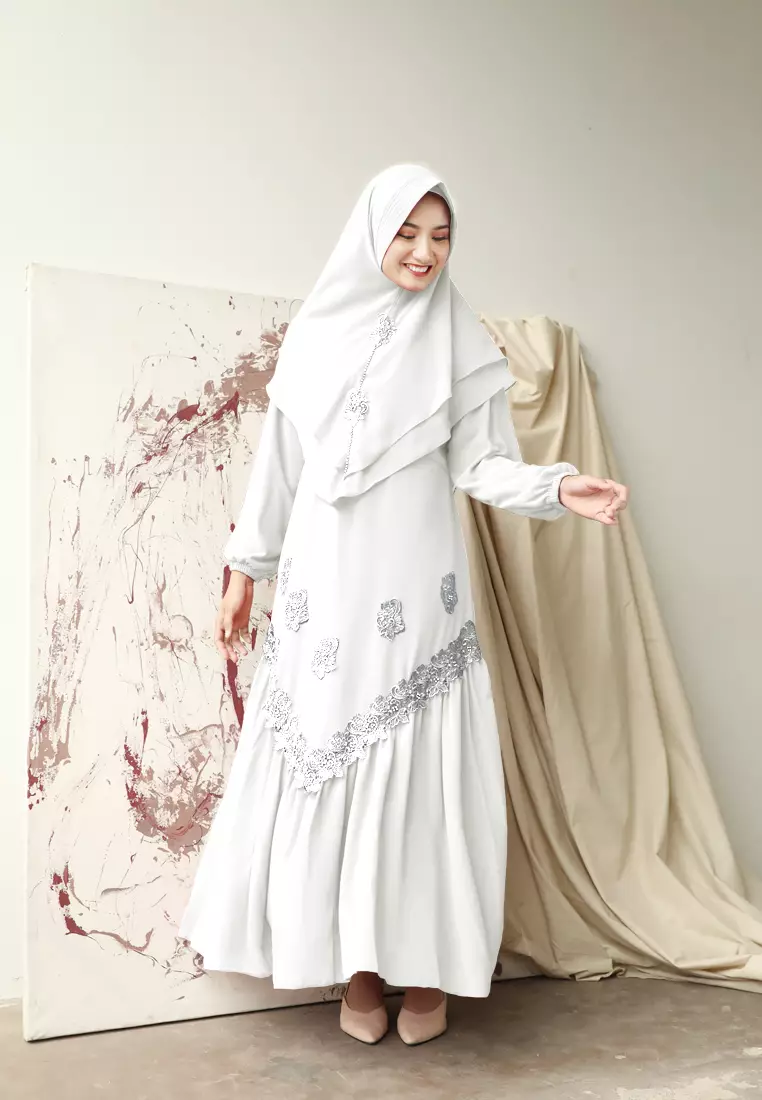 Elwisa Dress | Gamis Khimar Brukat | Long Dress - Coconut White