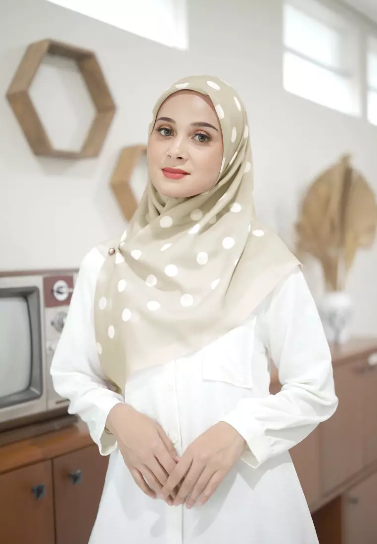 Polka Dot Printed Scarf | Hijab Segiempat Motif - Cream Coconut