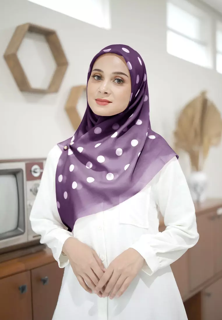Polka Dot Printed Scarf | Hijab Segiempat Motif - Purple Eggplant