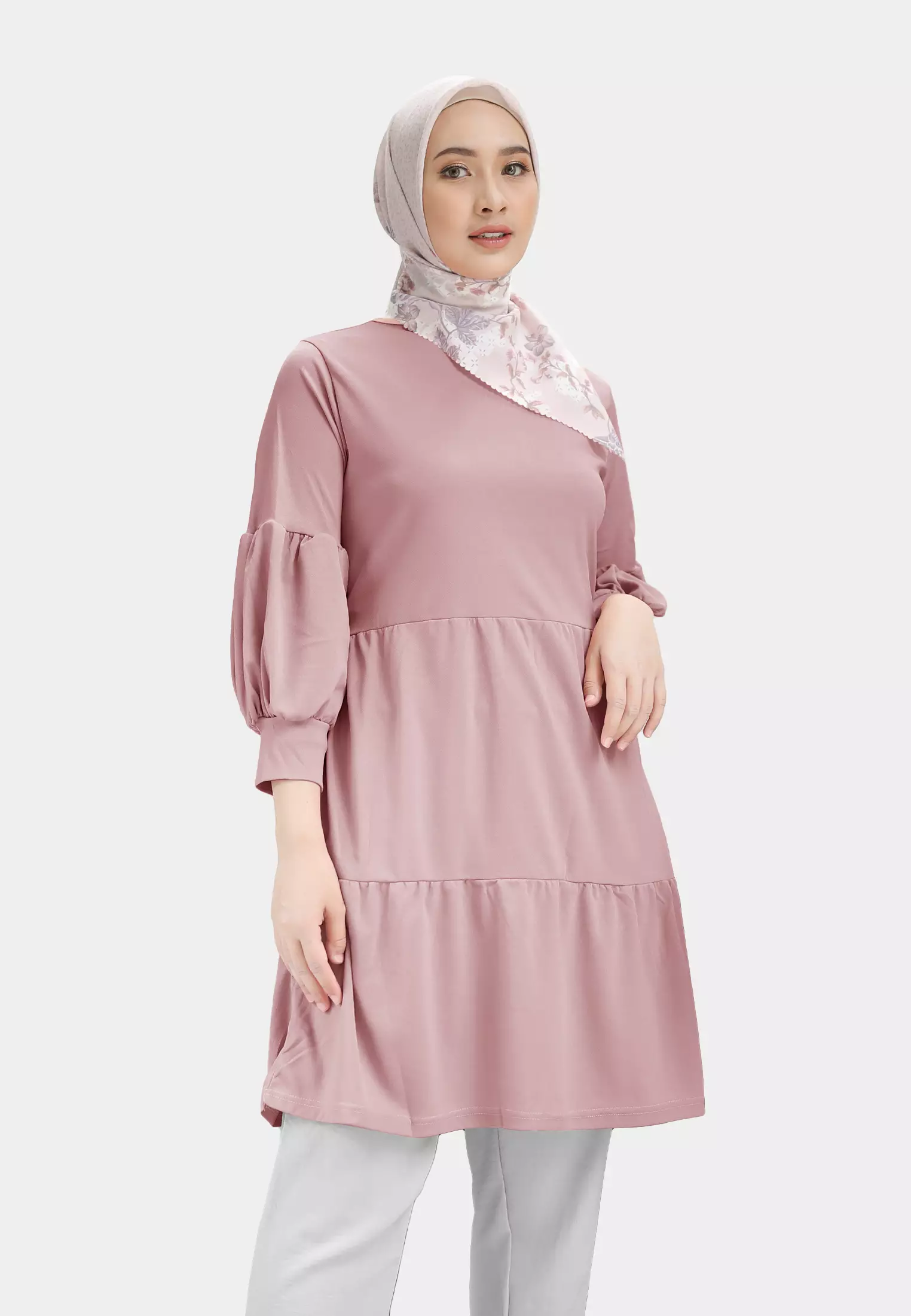 Prisia Tunik | Atasan Wanita | Blouse Tunic | Baju Wanita Lengan Panjang - Cherub Pink