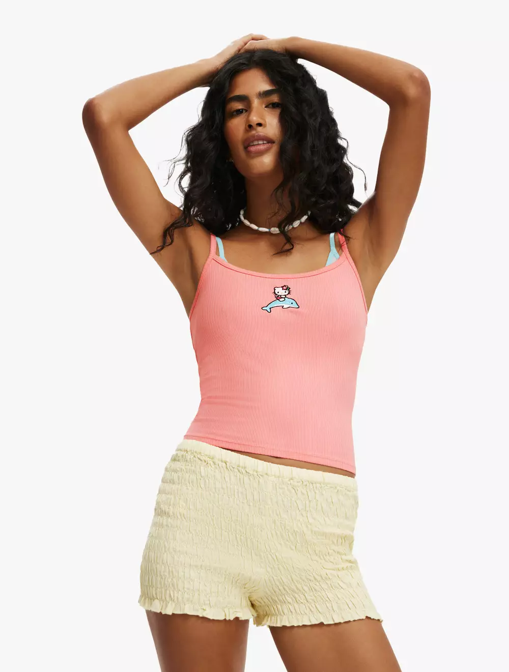 COTTON ON - UNDERWEAR & PAKAIAN TIDUR - LCN URBAN GRAPHIC CAMI - LCN SAN HELLO KITTY DOLPHIN/ CANDY PINK