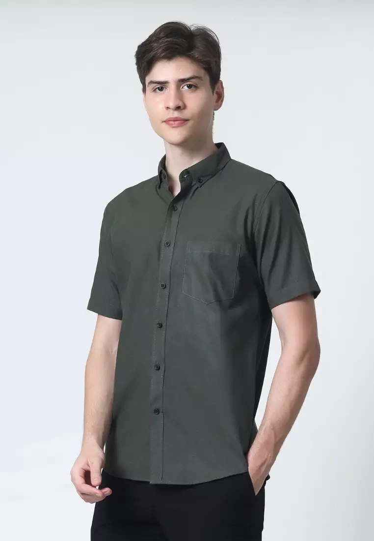 Cotton Well Ben Short Sleeve Oxford Shirt Army Green | Kemeja Pria Lengan Pendek Basic Polos Hijau