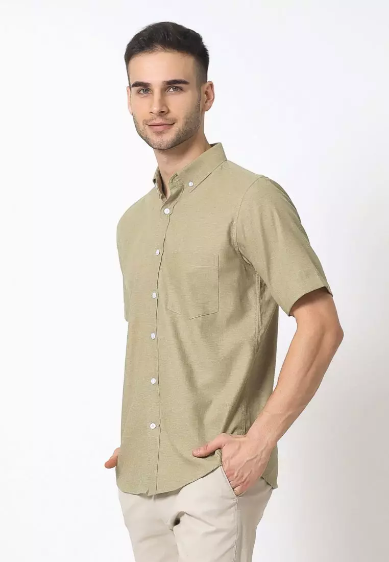Cotton Well Ben Short Sleeve Oxford Shirt Olive Sage Green | Kemeja Pria Lengan Pendek Basic Polos Hijau