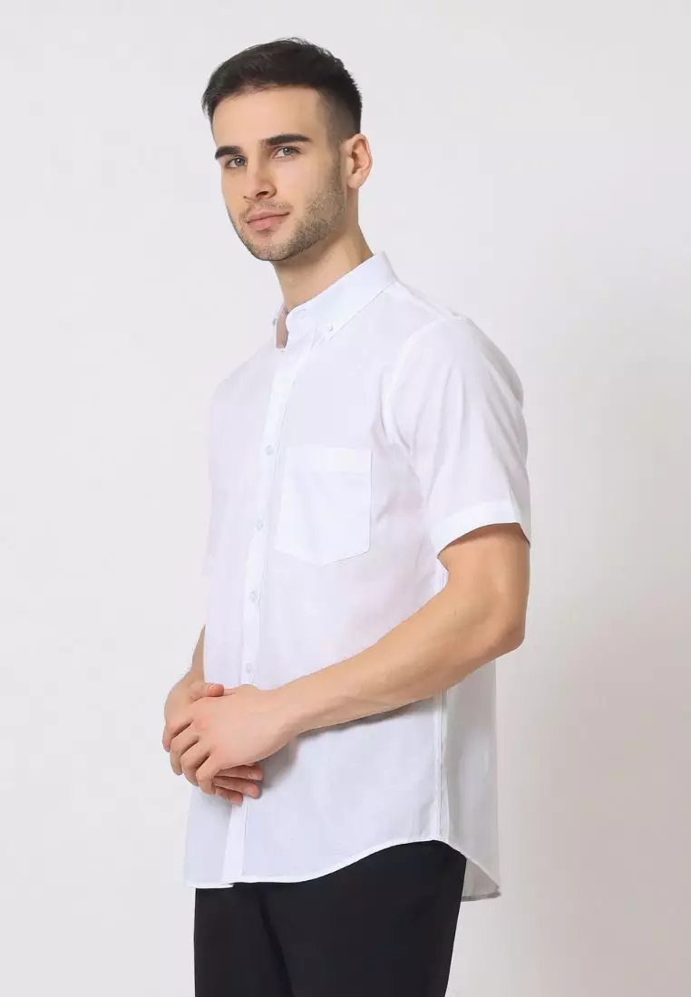 Cotton Well Ben Short Sleeve Oxford Shirt White | Kemeja Pria Lengan Pendek Basic Polos Putih