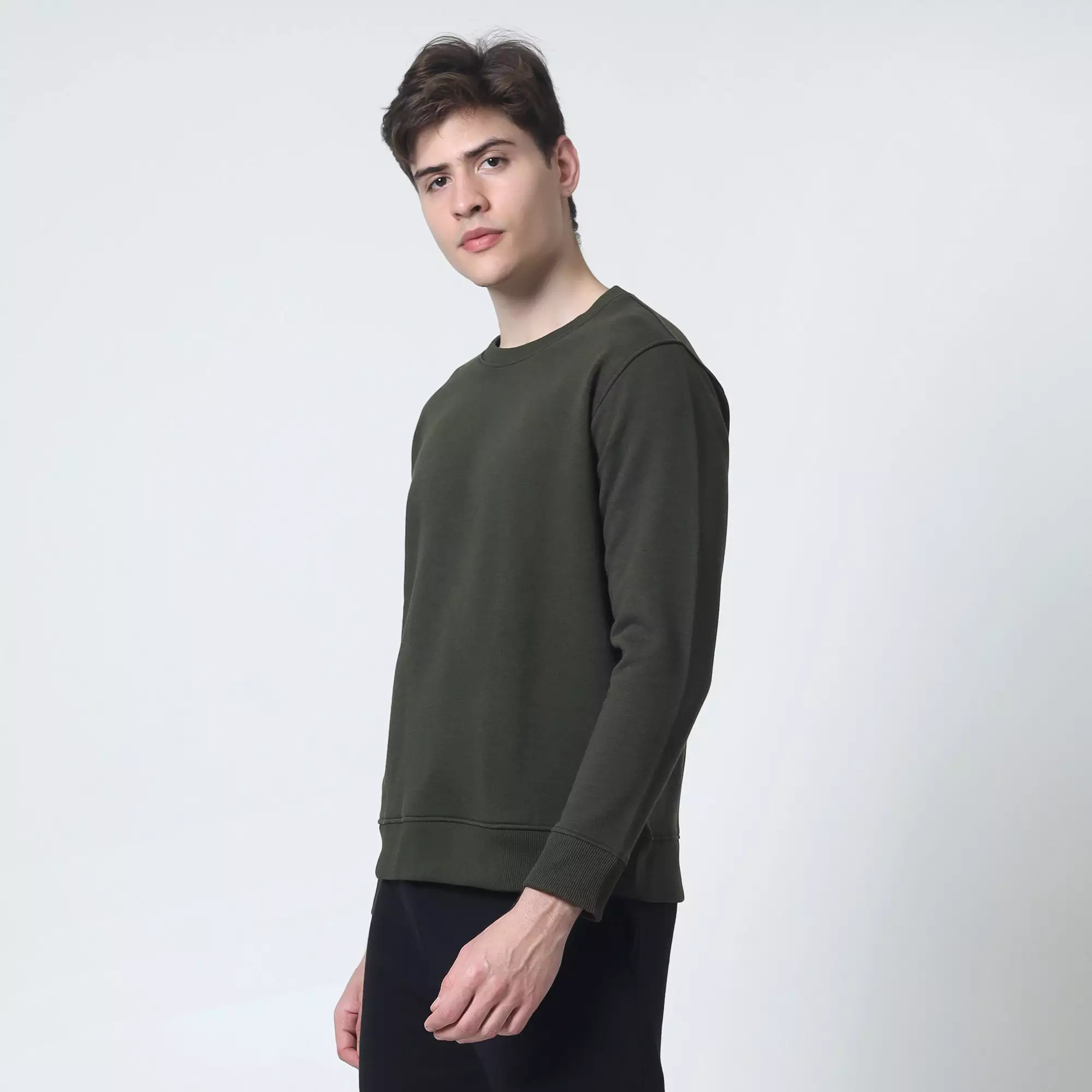 Cotton Well Coofy Crewneck Sweatshirt with Hidden Pocket Army | Sweater Polos Kantong Tersembunyi Hijau