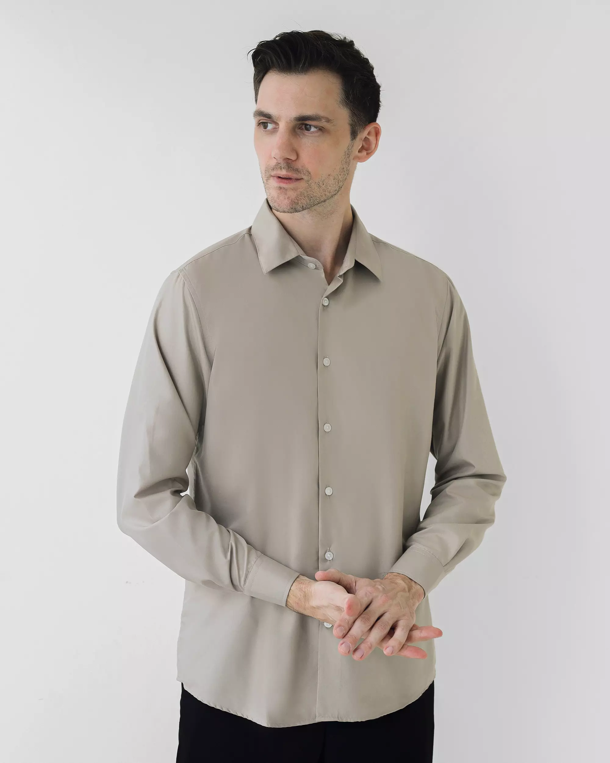 Cotton Well Elvon Smart Shirt Taupe | Kemeja Pria Formal Basic Clean Lengan Panjang Cokelat Abu