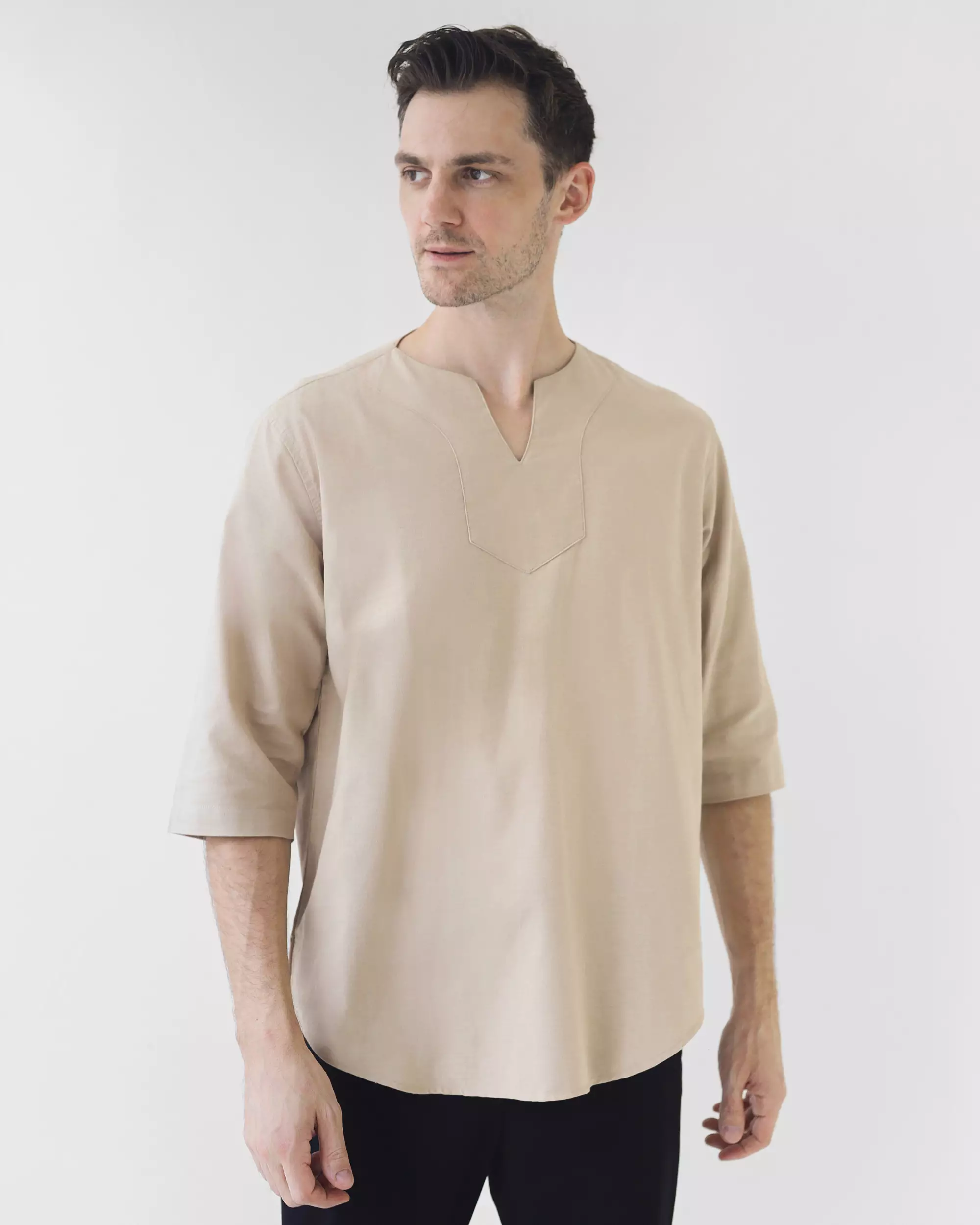 Cotton Well Morocco Shirt Latte | Kemeja Koko Pria Kerah V Neck Coklat Susu