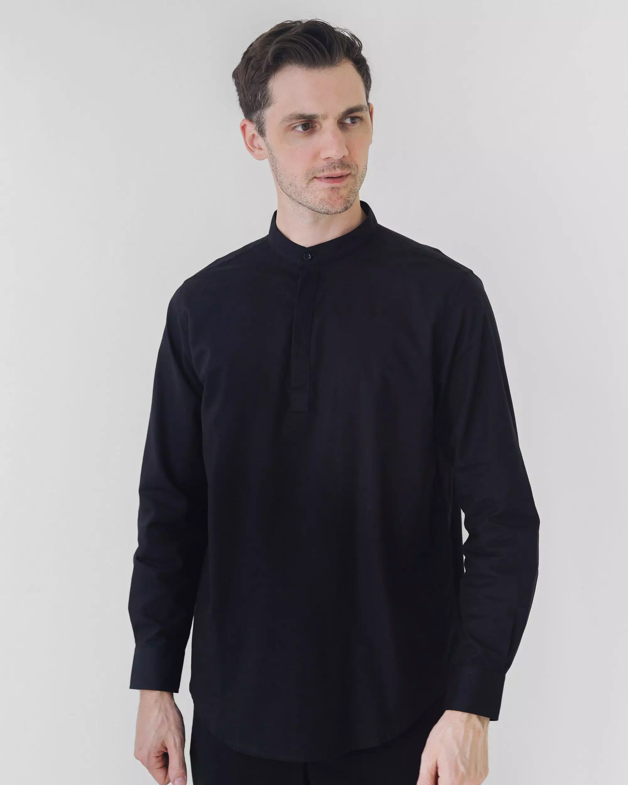 Cotton Well Oman Henley Shirt Black | Kemeja Koko Basic Lengan Panjang Hitam