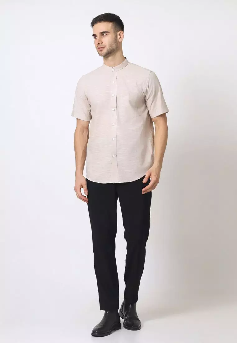 Cotton Well Zayn Shirt Khaki | Kemeja Koko Oxford Slub Lengan Pendek Cream