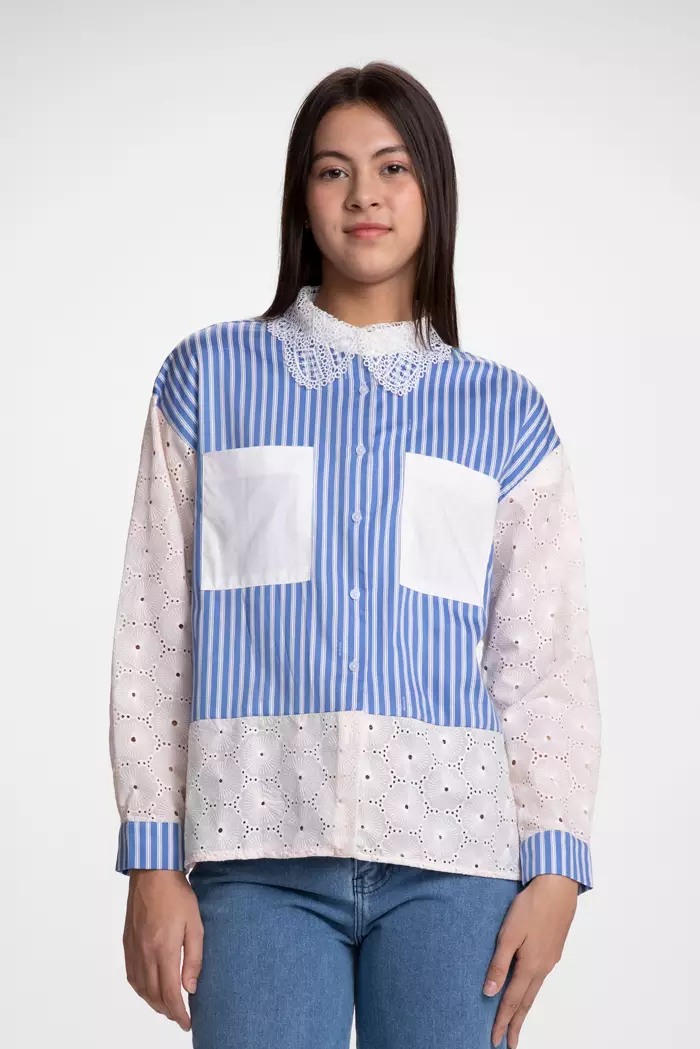 COTTONINK - Atasan Kemeja Wanita Navy stripe maelys #ResortCollection
