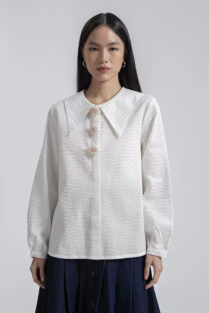 COTTONINK - Atasan Kemeja Wanita Off-white Abril #FallWinter2025
