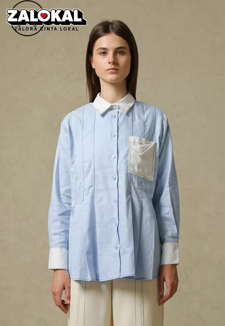 COTTONINK Studio - Atasan Kemeja Wanita Light Blue Kelham #StudioSummerCollection