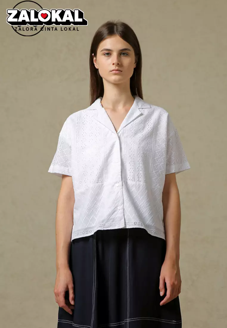 COTTONINK Studio - Atasan Kemeja Wanita Off-white Embroidery Cardin #StudioSummerCollection