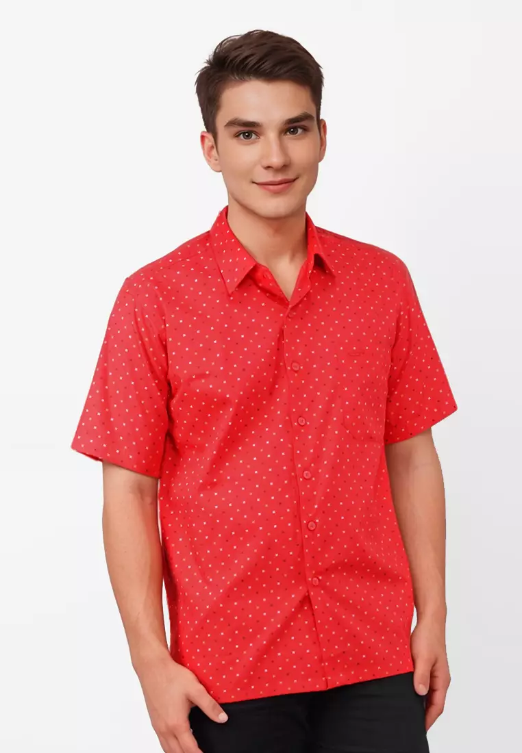 Crocodile EAST 1652 Red - Men Shirt Kemeja Lengan Pendek - Relax Fit - Katun