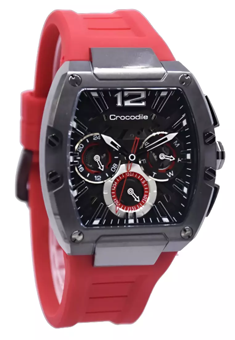 Crocodile - Jam Tangan Pria - Black - Red Rubber Strap - CM-042G34J